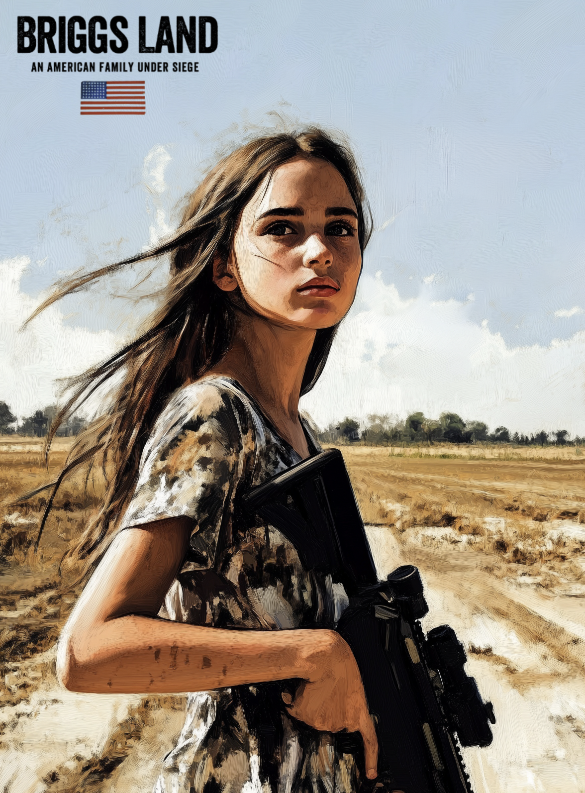 On Briggs Land, Grace Briggs was at target practice with the militia. The shooting range was set up in an open area, with men dressed in tactical gear lined up with their weapons. Grace stood among them in her usual clothing, while her daughter Abbie, dressed in ripped black jeans and a sleeveless band t-shirt, fired single rounds from a heavy ACR machine gun. She looked badass. Everyone wore ear protection as they systematically shredded the targets downrange.