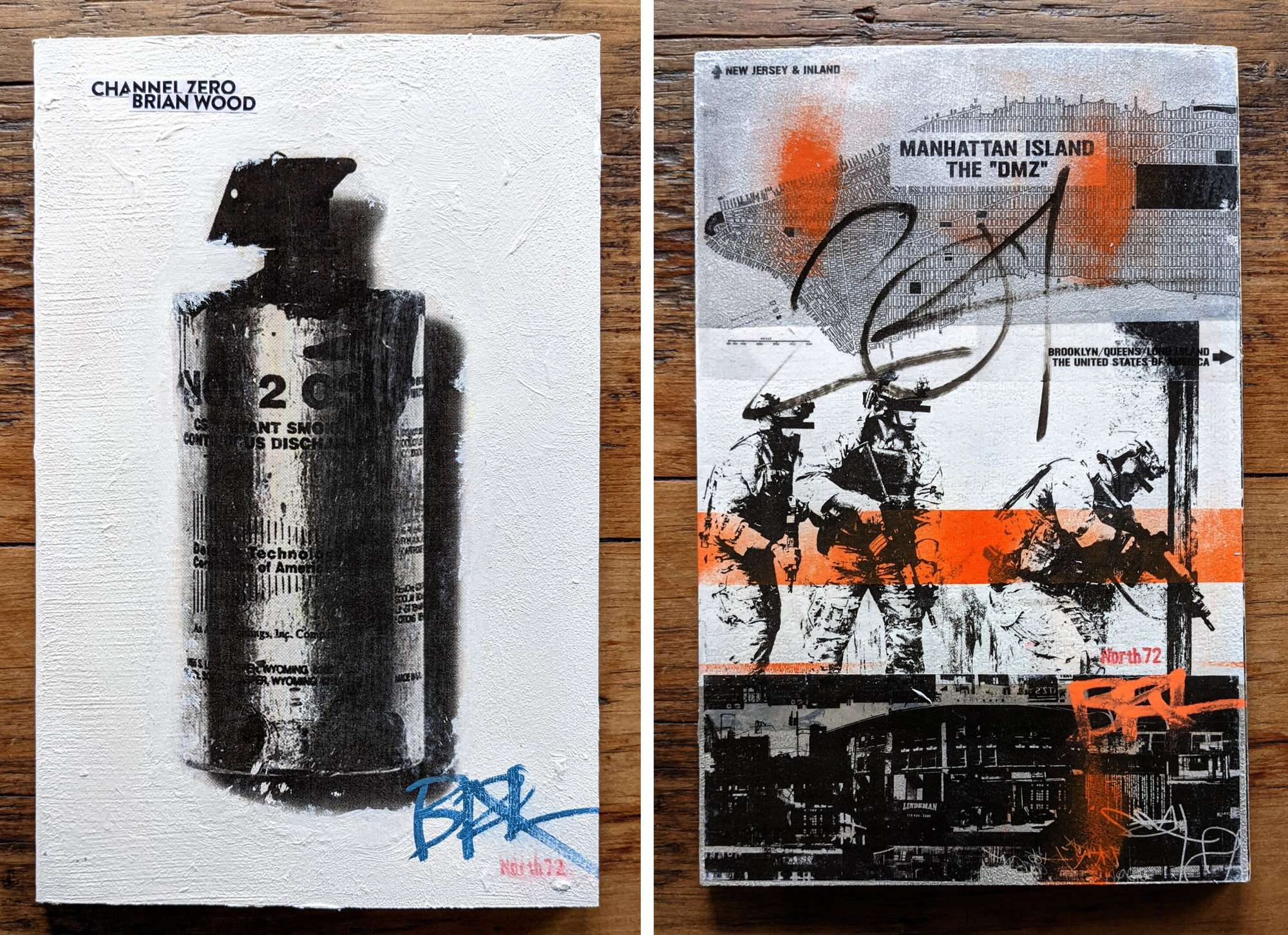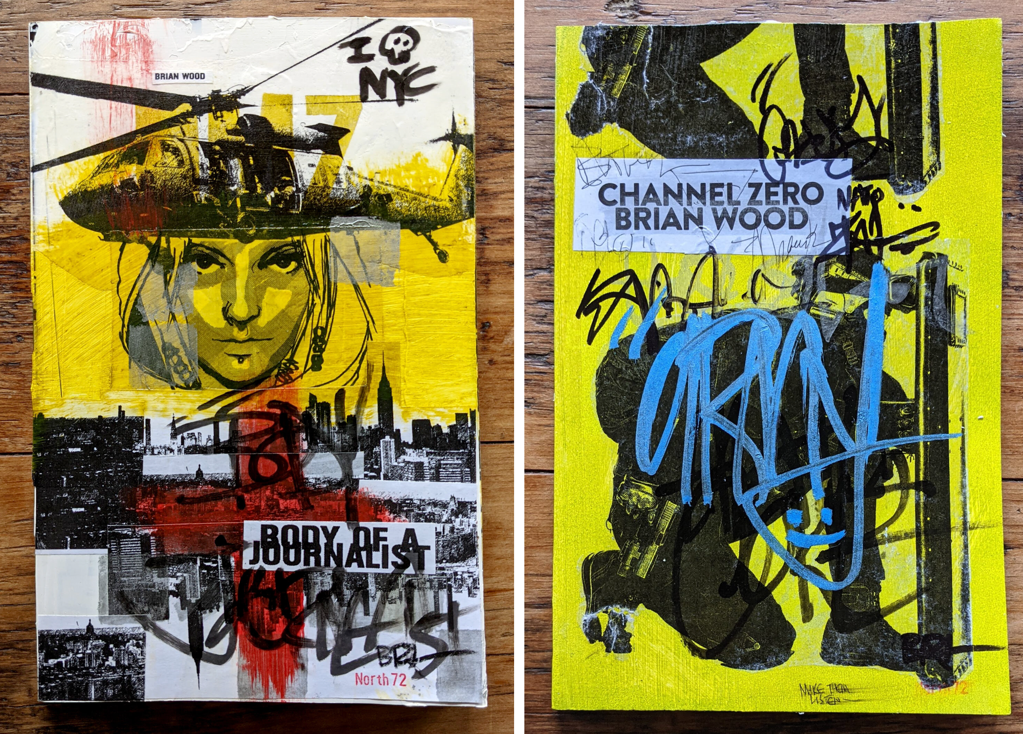 These are copies of DMZ and Channel Zero with original art painted directly on the cover. Most of these specific ones have sold already, so I would be creating something new for each $500 subscriber and shipping it to you free (unless you live someplace where shipping is crazy expensive, in which case we’ll work something out.) For the most part you get what you get, but I can consider commission details.