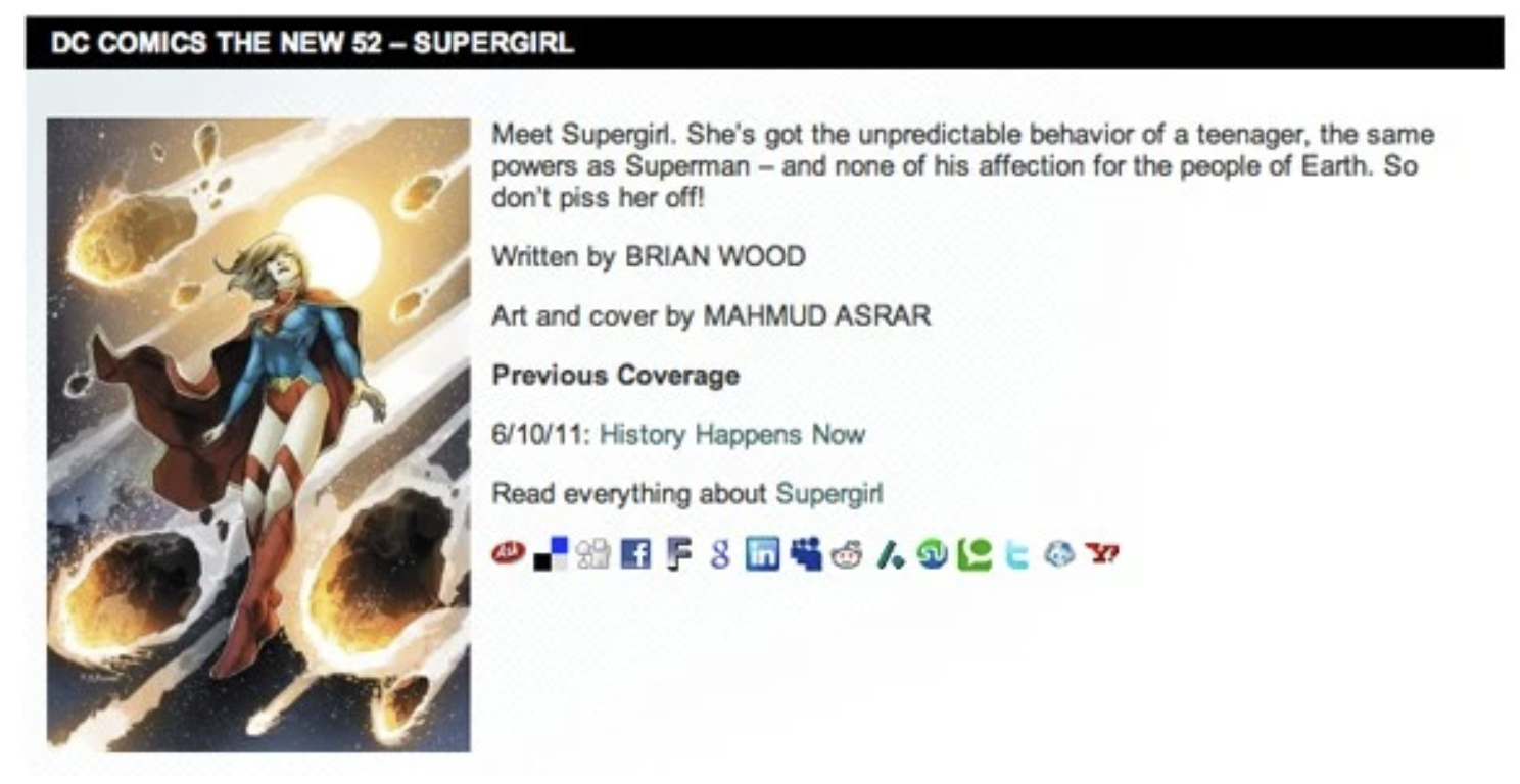 I was hired on in 2009-2010 to take over the long-running Supergirl comic book at DC Comics. In 2011 when their “New 52” reset was conceived, they wanted me to stay on and adapt what I was working on to fit the “New 52” brief, which I did.